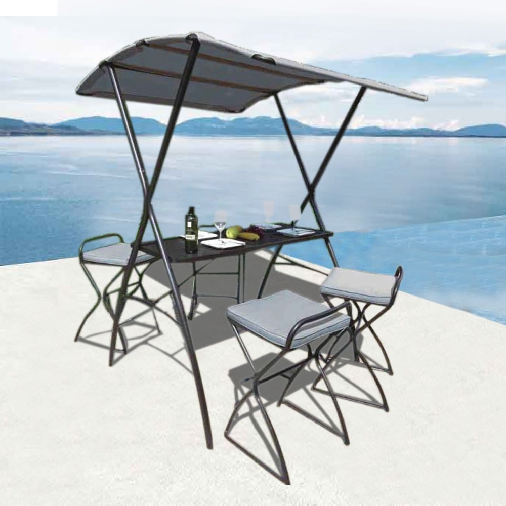 Dimensions (Table): Width: 138cm Depth: 53cm Height: 96cm, Dimensions (Chair): Width: 46cm Depth: 50cm Height: 82cm, Dimensions (Tent bar): Width: 144cm Depth: 117-175cm Height: 210cm,