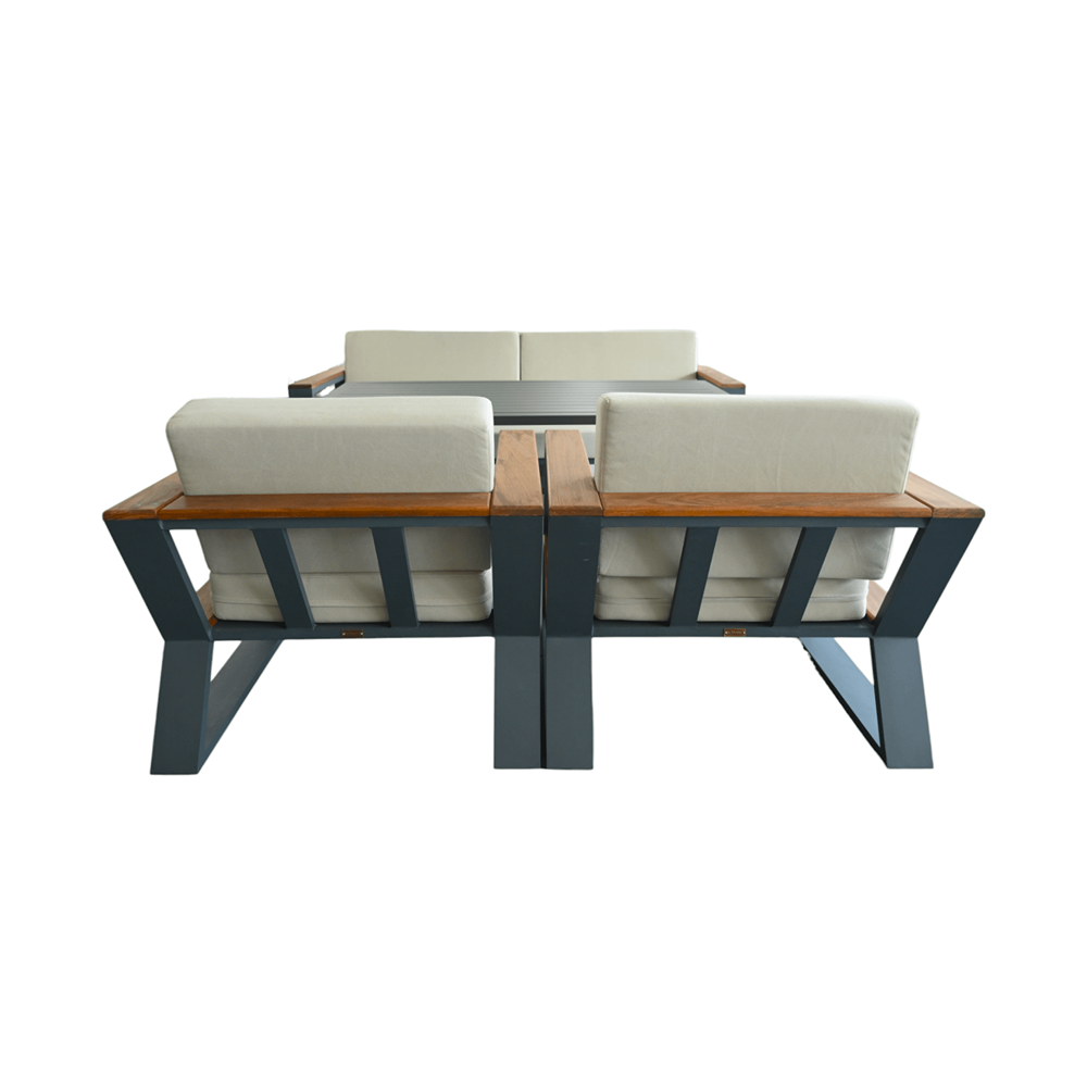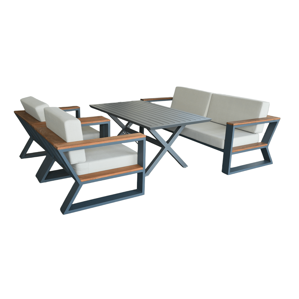 Dimensions (3 seater): Width: 202cm Depth: 84cm Height: 62cm, Dimensions (1 seater): Width: 86cm Depth: 84cm Height: 62cm, Dimensions (table): Width: 86cm Depth: 150cm Height: 66cm,