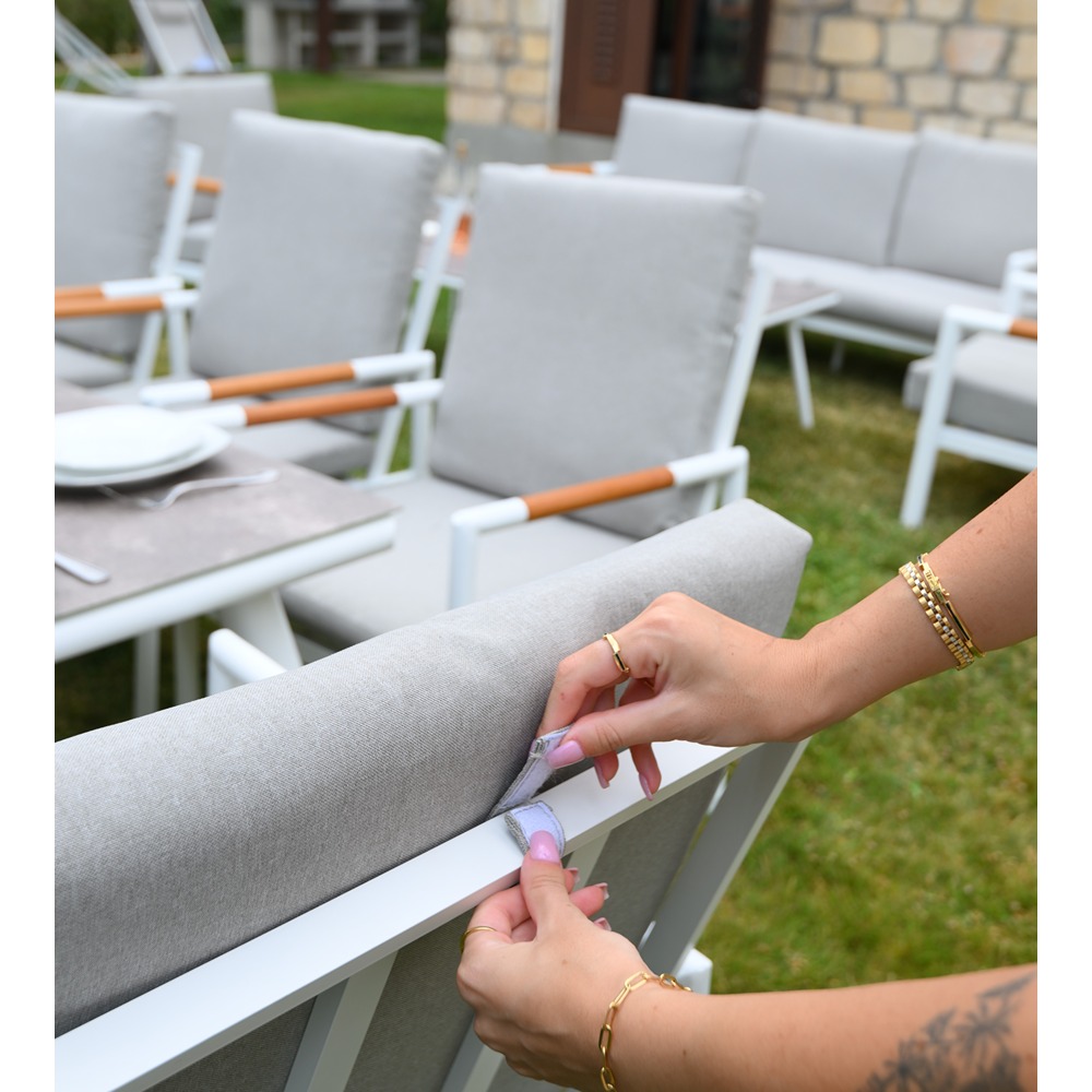 Outd Dining Set CC 1+8 C-J24002 White + Cush Grey