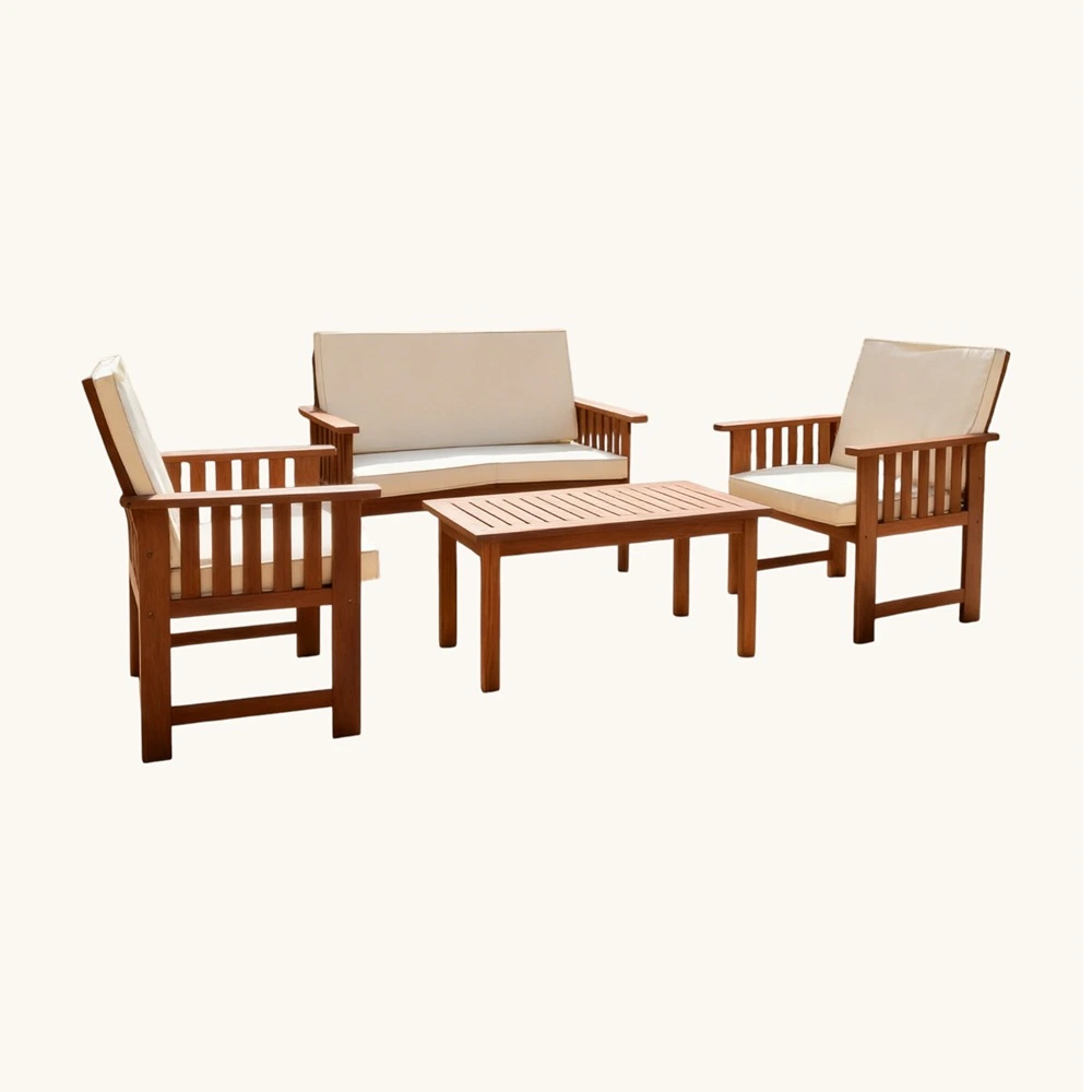 Outd Sofa Set Furniture 042 Wood 2+1+1+Table Beige