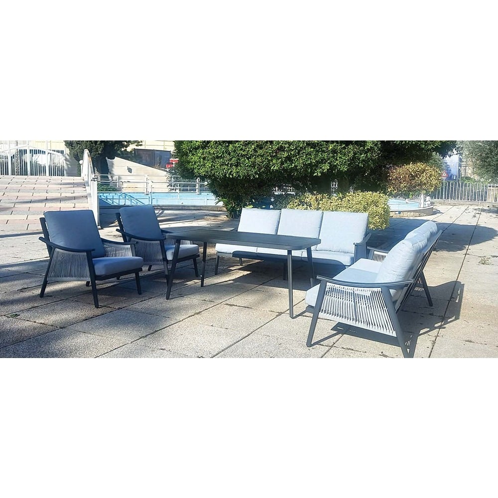 Dimensions (3 seater): Width: 190cm Depth: 80cm Height: 82cm, Dimensions (1 seater): Width: 70cm Depth: 80cm Height: 82cm, Dimensions (table): Width: 150cm Depth: 80cm Height: 70cm,