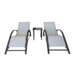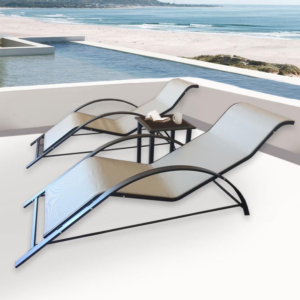 2 sunloungers + table, Dimensions (sunlounger): Width: 162cm Depth: 67cm Height: 60cm, Dimensions (Table): Width: 41cm Depth: 45cm Height: 41cm,